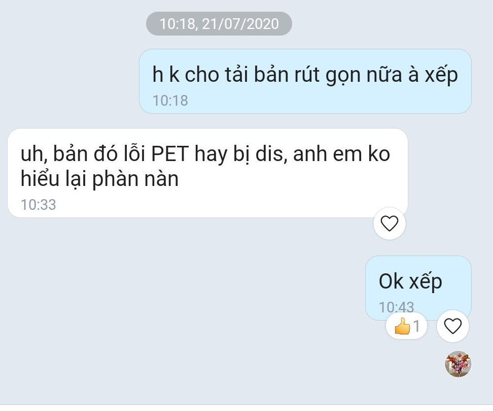 Thắc mắc bản download mini xoá rồi à ad ơi