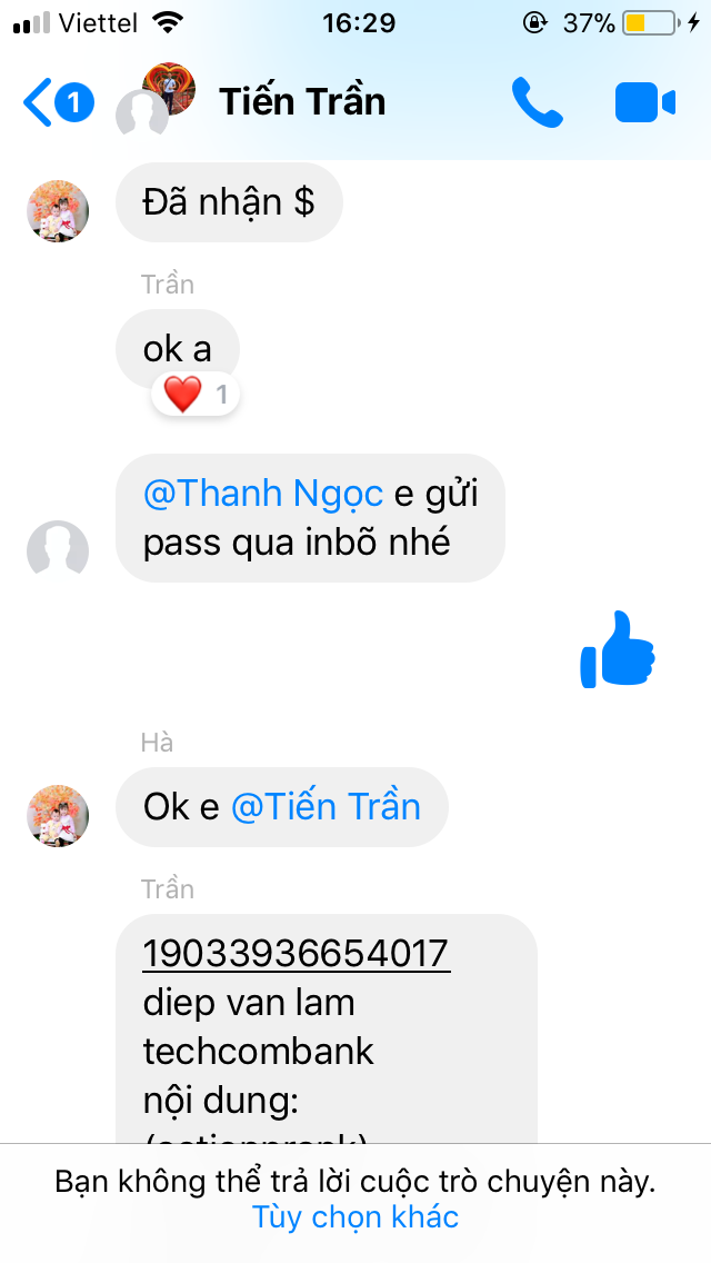 không phải tiền , chủ quán chuyển rik nhưng nó ko trả tiền ý , bon này liều vl như kiểu đy ăn cuiớp , nói chung tài sản ảo