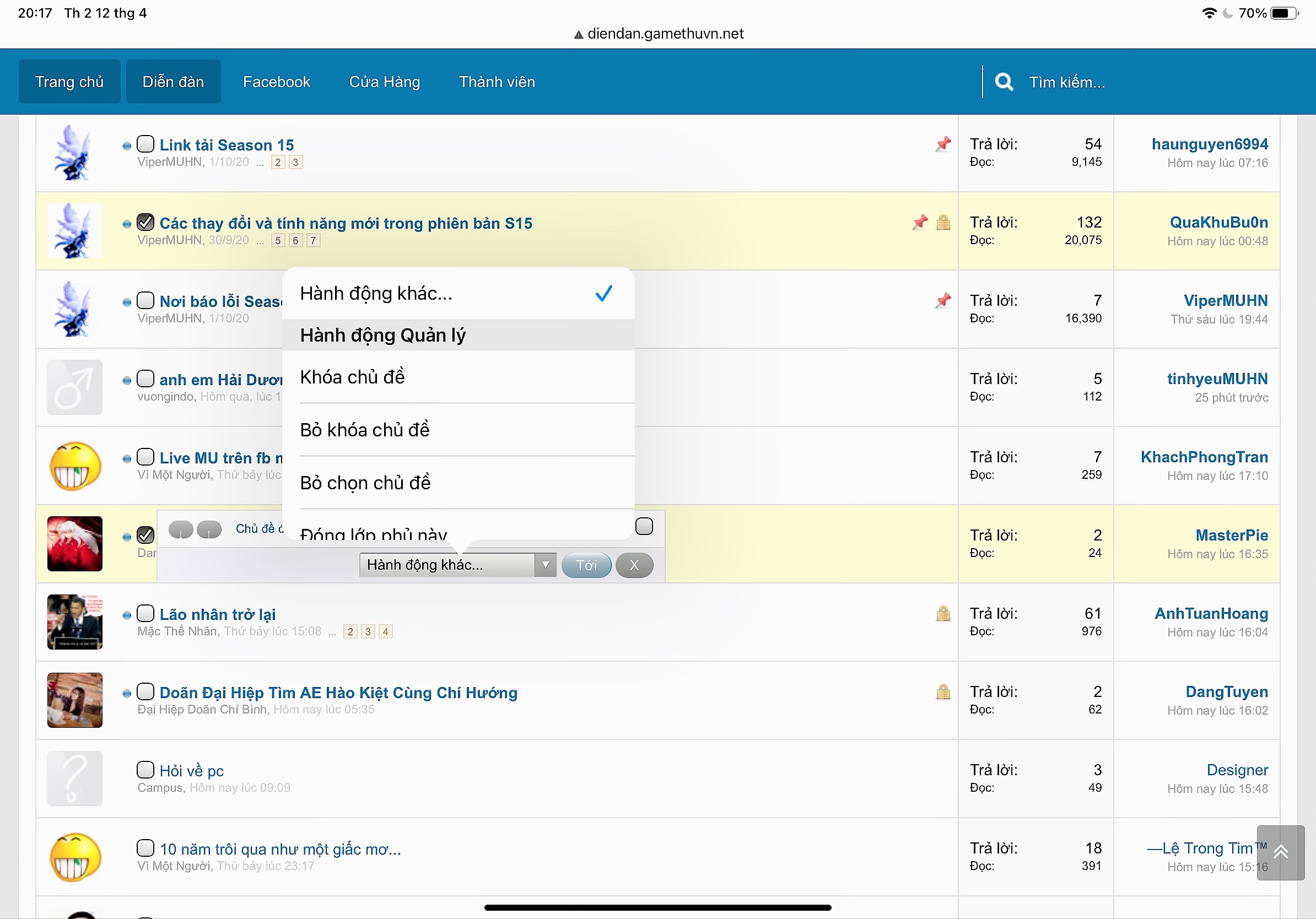 Chức năng khoá topic chỉ TMod trở lên mới có mà. Nên chắc bị lỗi thôi, không hiểu sao mình thành viên bt cũng có chức năng của mod