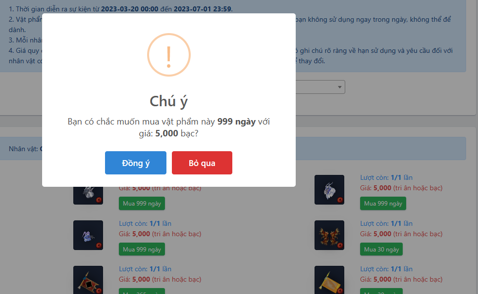 4. Thấy trên trang quản lý có rồi. Cũng chưa dám mua vì thông báo vật phẩm mua là hạn sử dụng 5 năm mà vào xem toàn thấy 999 ngày...