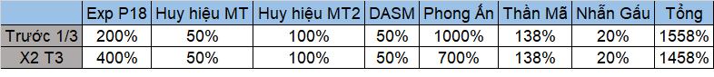 Công thức của mình có chính xác. Tất cả % này đem nhân với exp quái.Nếu vậy thì ăn P/A trước 1/3 lợi hơn.