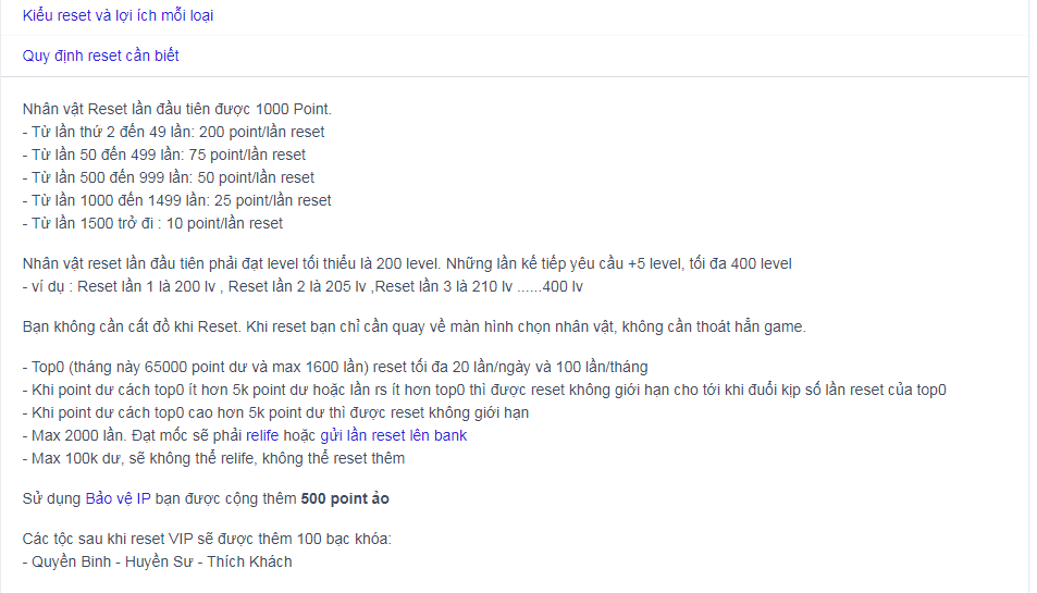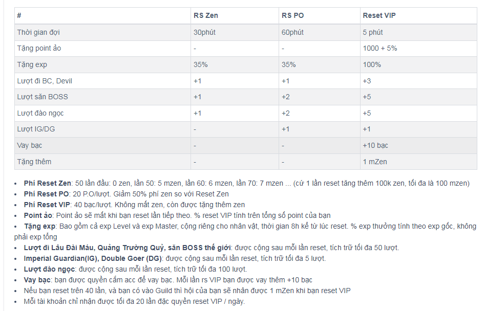 anh em cho mình hỏi chút? mình mới chơi chơi lại game này mọi người cho hỏi là giữa 2 kiểu chuyển đổi RS là relife hoặc gửi lần reset lên bank thì cái nào hay hơn và nên dùng loại nào? đọc cũng hơi khó hiểu mong mọi người góp ý!