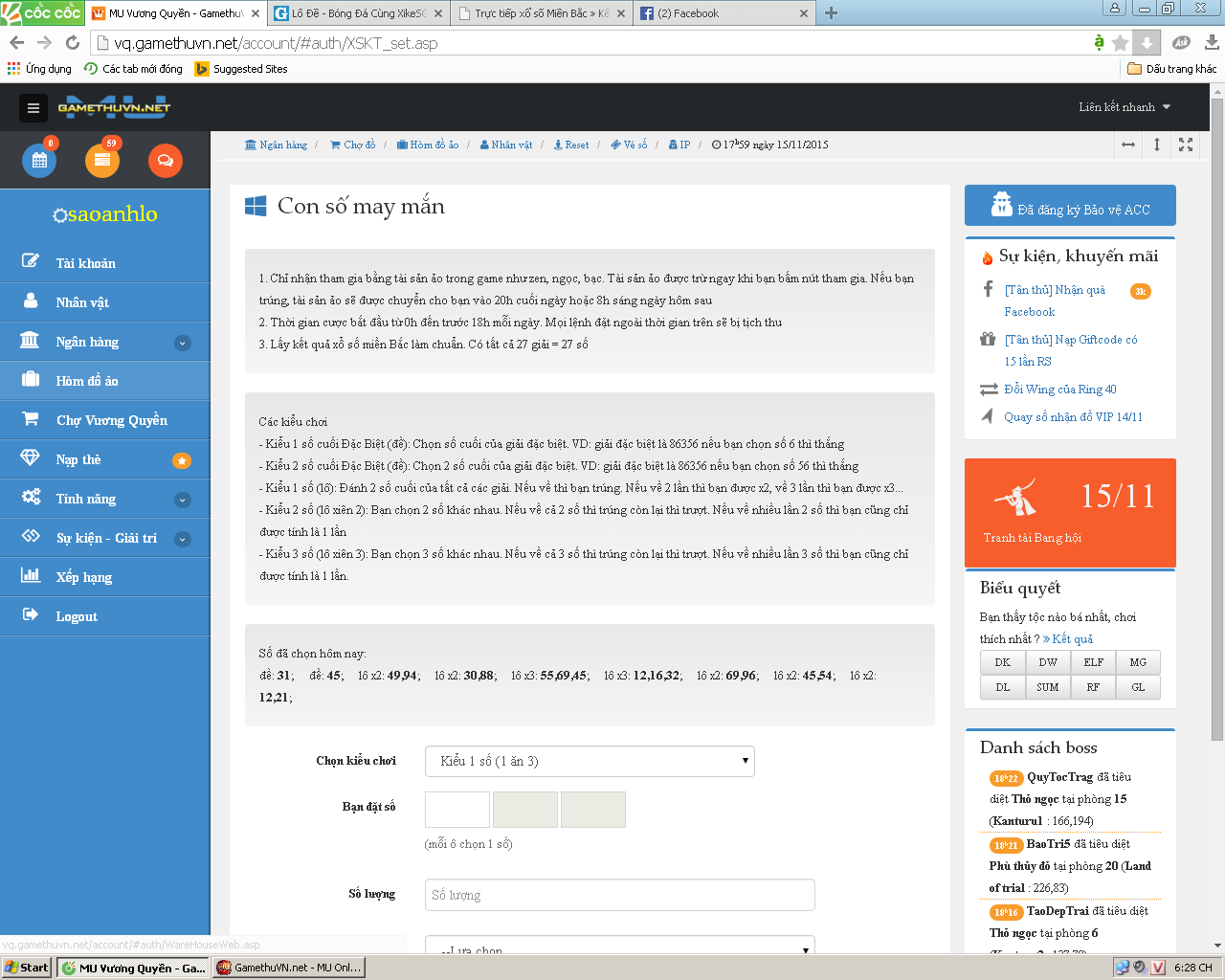 16. Mở thưởng chủ nhật ngày 15/11/2015