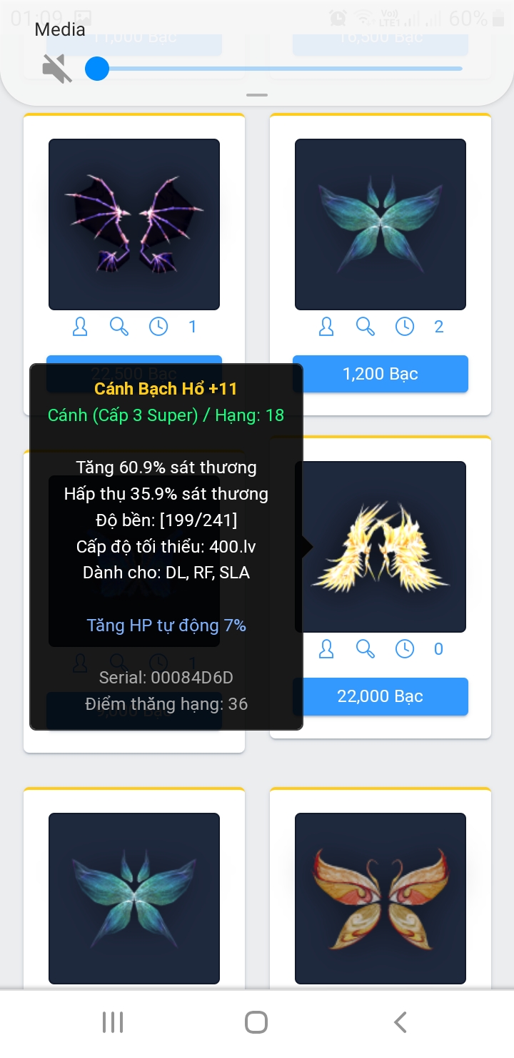 Chuẩn nhé, một phát hiện rất chính xác, fan mới fix lại nhé, nên đợt đổi đồ lần này ae ko thể đổi cánh chu tước, bạch hổ, thanh long, huyền vũ hoặc kim hỏa, kim phụng nữa. Thời gian mình đăng bài bán 2 cánh này 2 tháng trước vẫn hạng 19
