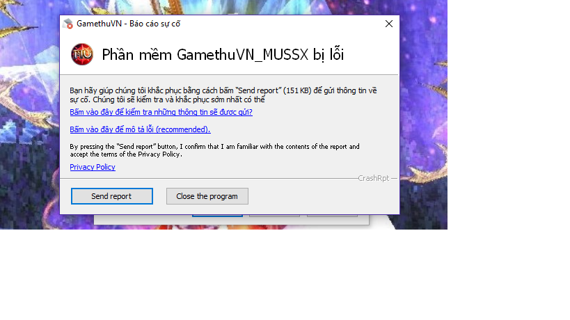 8. e đang chơi thì bị lỗi này và không vào đc game, bác nào giúp e vs