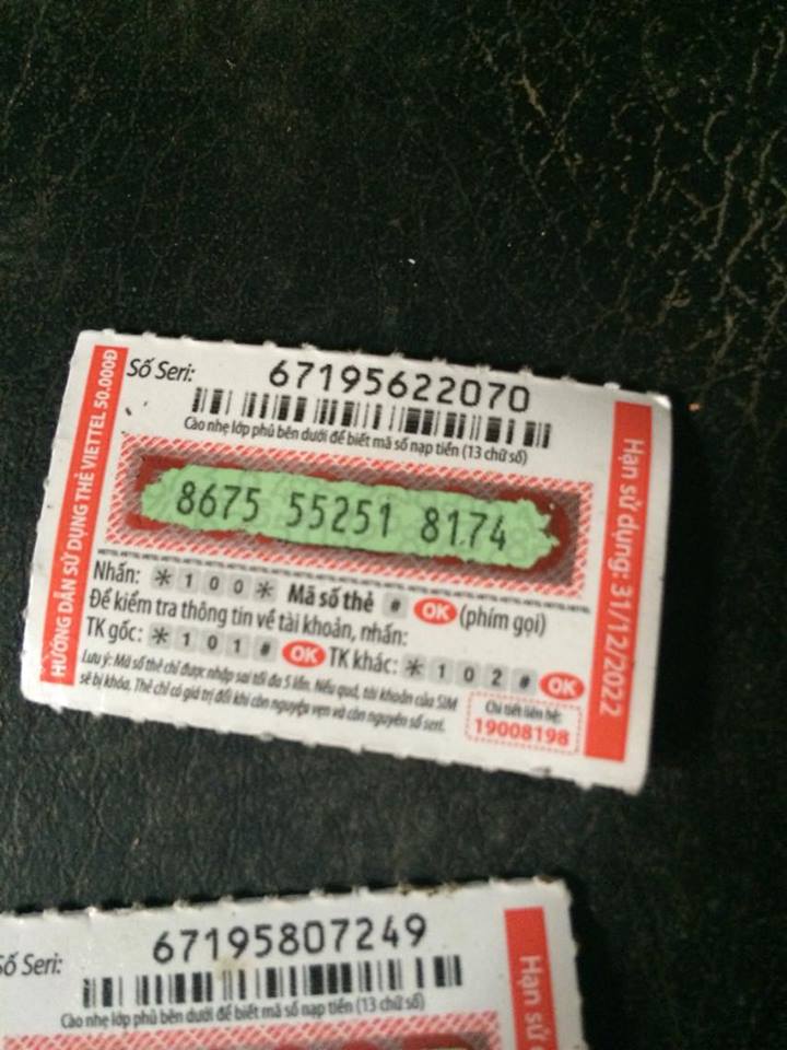 1. em là chủ acc TuThanVP sv Hà Nội sdt đăng ký 01683xxx954 thẻ vettel mệnh giá 50k nạp lúc 19h58 phút ngày 30/12/2016 số sêri 67195807249.... và 1 thẻ viettel mệnh giá 50k số sêri 67195622070 nạp lúc 20h17 phút ngày 30/12/2016 tổng cả 2 thẻ viettel nhờ BQT và ADMin kiẻm tra giải quyết giúp em ạ ... em cảm ơn