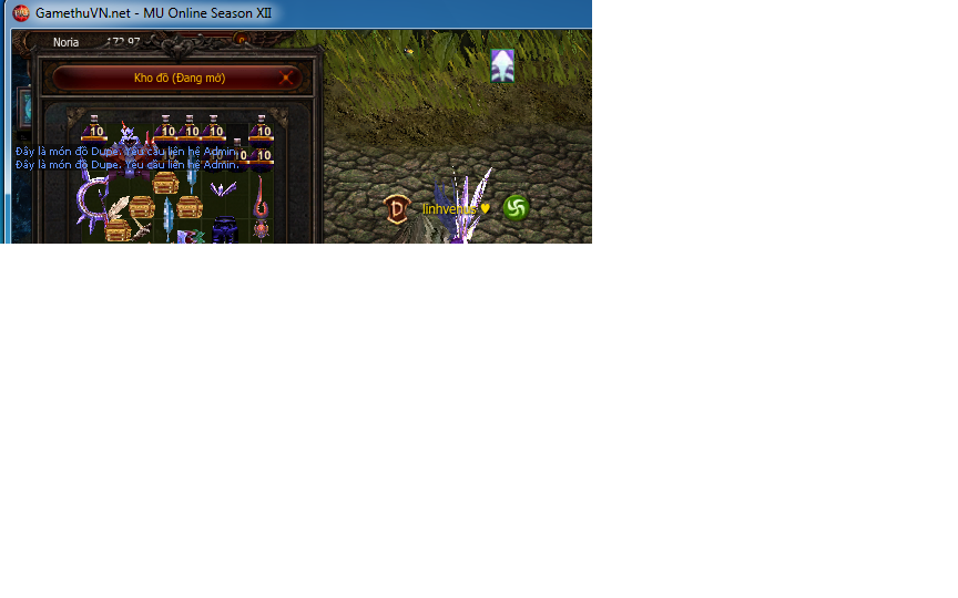 chả là em có it lông chim ở trong hòm đồ giờ lấy ra nhân vật thì báo đây là món đồ dupbe vui lòng liên hệ cho ad .. ad giúp em hướng giải quyết với ạ!