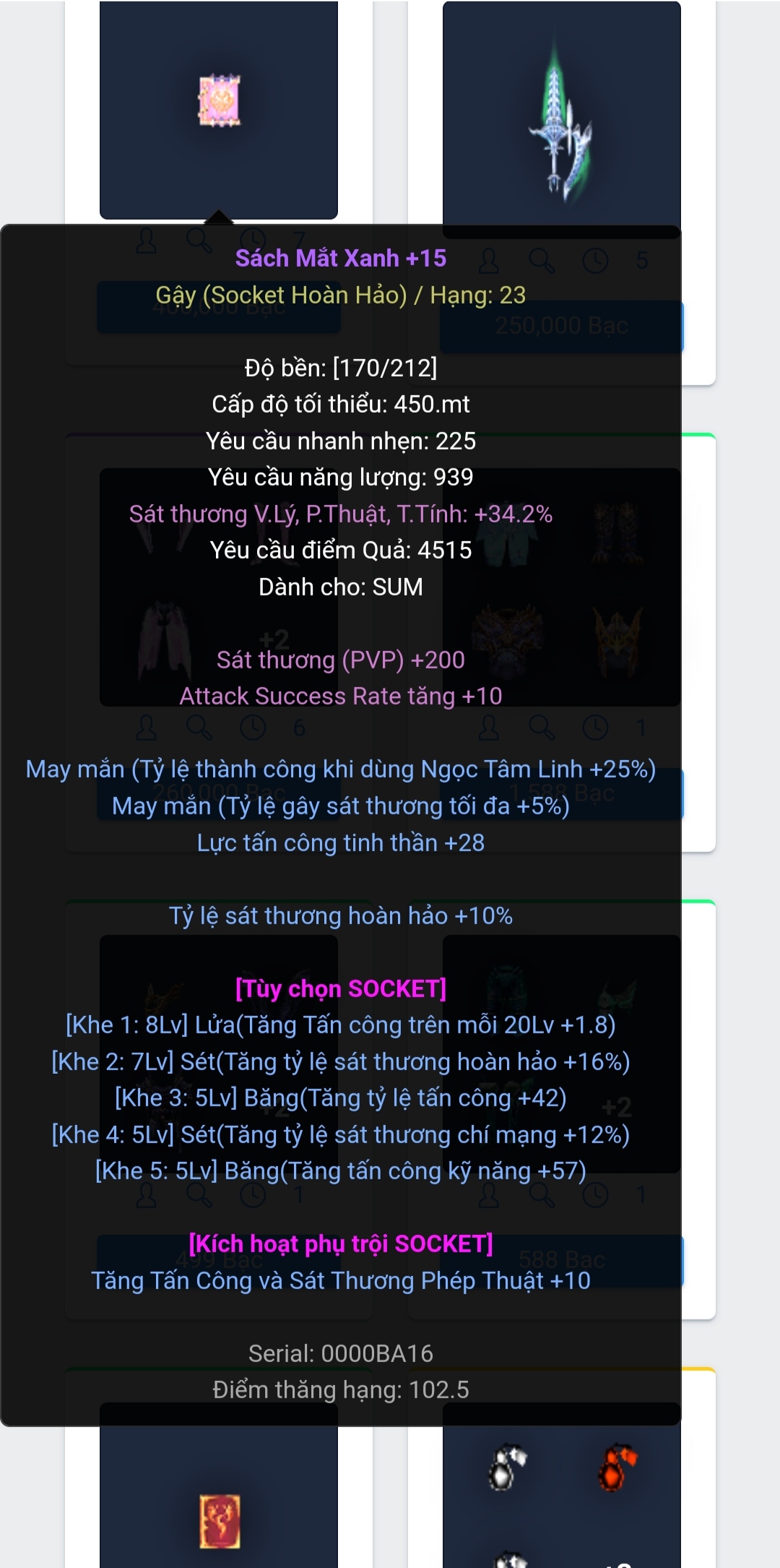 gì đâu mà căng. bác cho 2 món đủ điều kiện thăng hạng vào, nó ra gậy mà muốn sách thì lại back ra cho lại, khi nào hiện sách thì click. Bác cứ tưởng tượng hạng 14 của DK có rất nhiều loại kiếm. mà mình thích kiếm nào thì cứ back ra cho vào lại, đúng kiếm ưng ý thì click thôi mà. gì đâu mà Căng