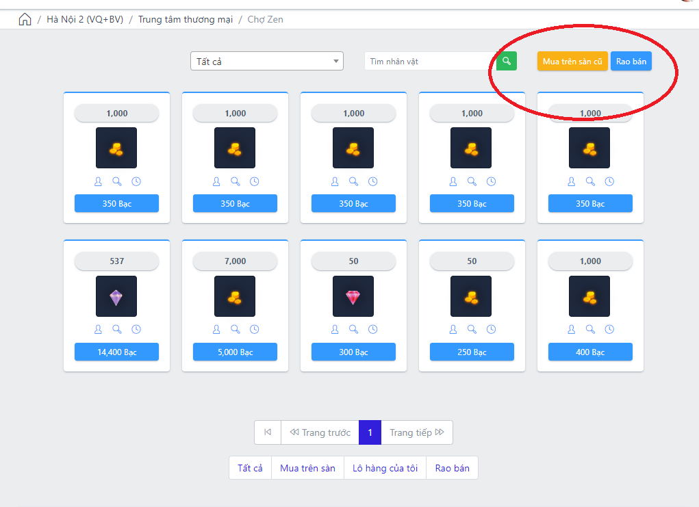 Sàn giao dịch tích hợp vô trong [Chợ zen] rồi. Cho Mua trên sàn, nhưng không cho bán trên sàn mới đau .