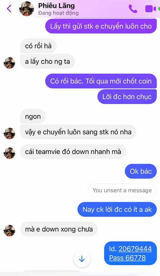 Như lời a nói số bạc trên sau khi qua acc B sẽ là bạc sạch ,không nên bị sử lí do có bằng chứng đoạn chat giao dịch với nhau
